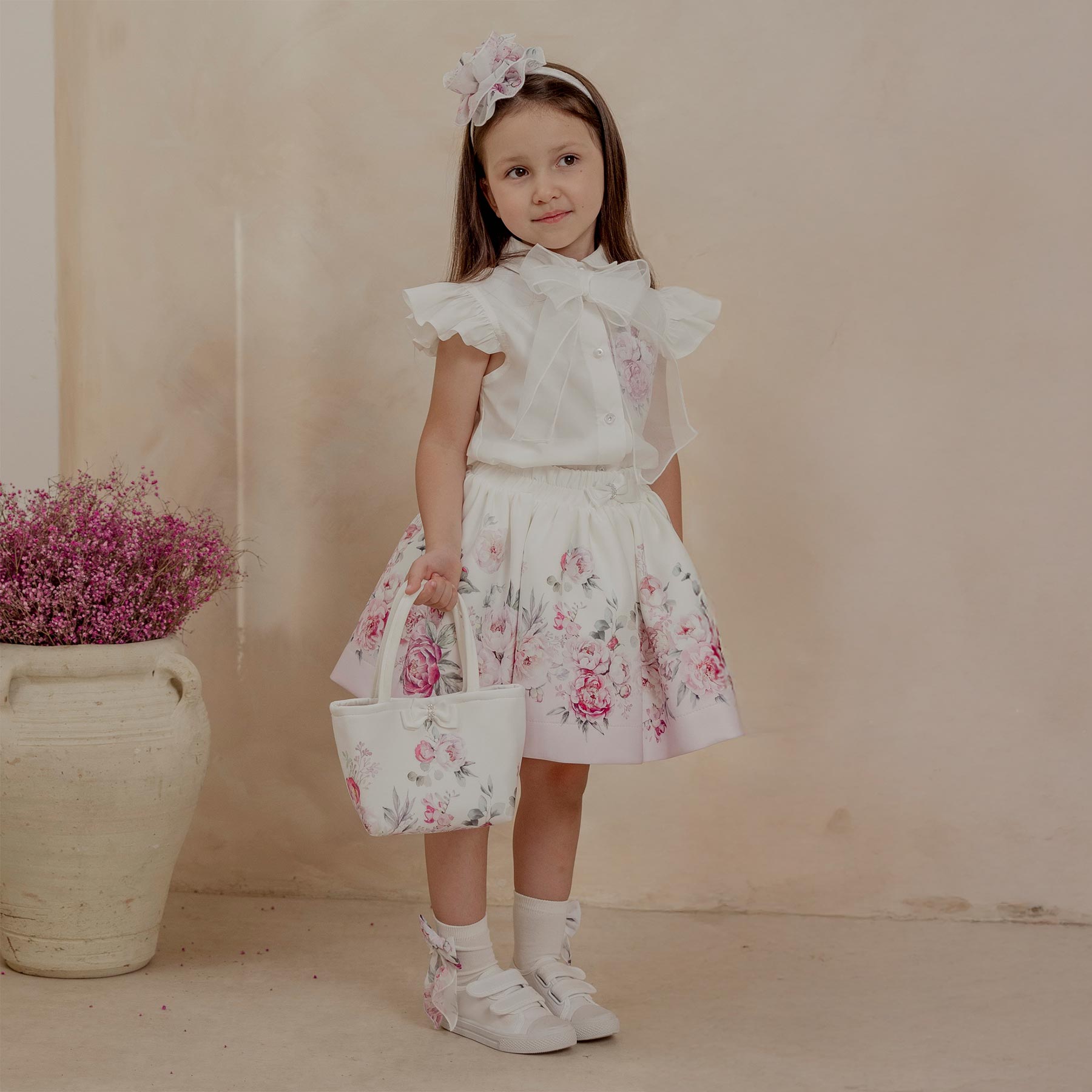 Daga Girls Blush Harmony Peony Skirt & Blouse Set X 2 - White Pink