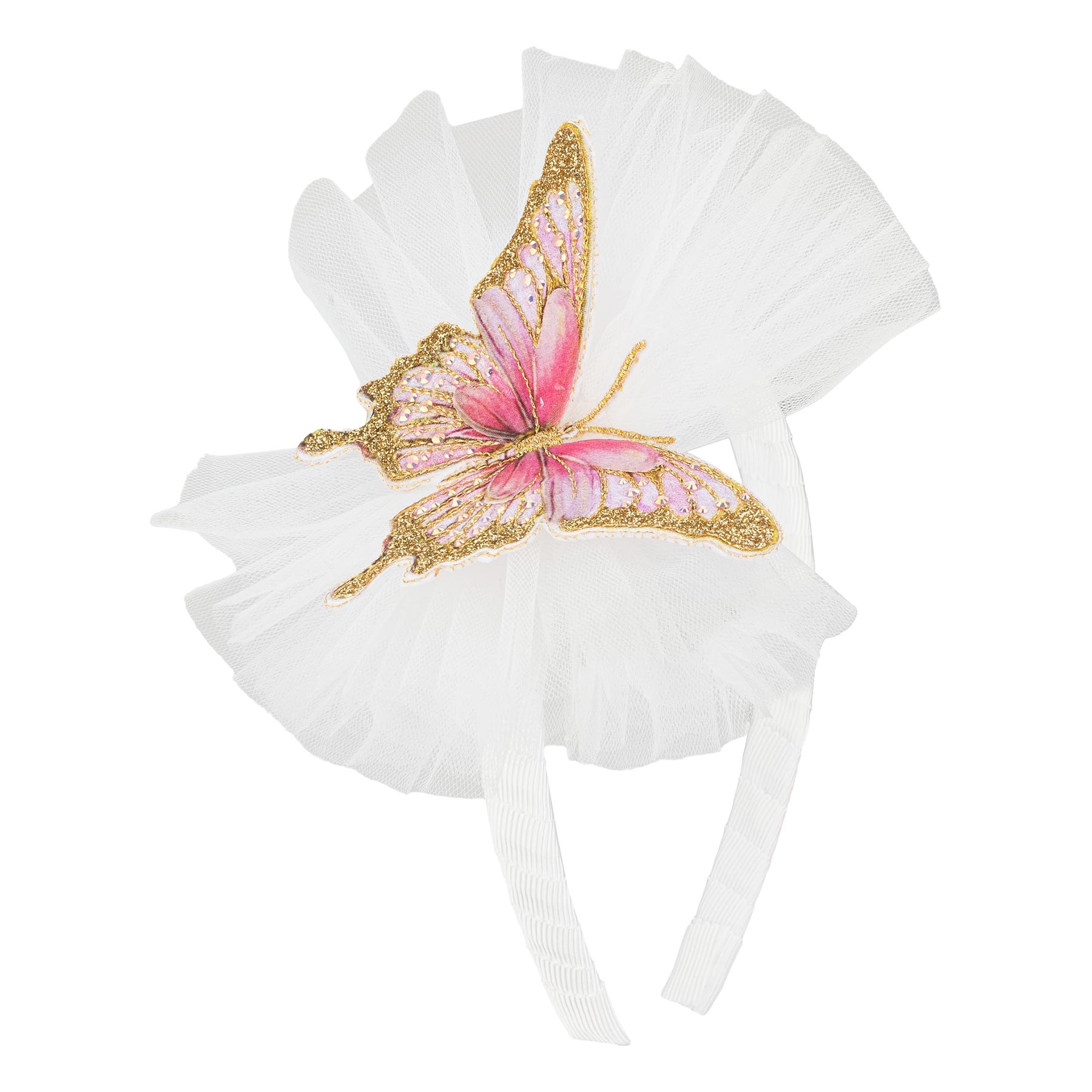Daga - Girls Twinkle Flight Collection -  gorgeous tulle bow with applique butterfly on a covered hairband  - One size - Hand Made in Poland.