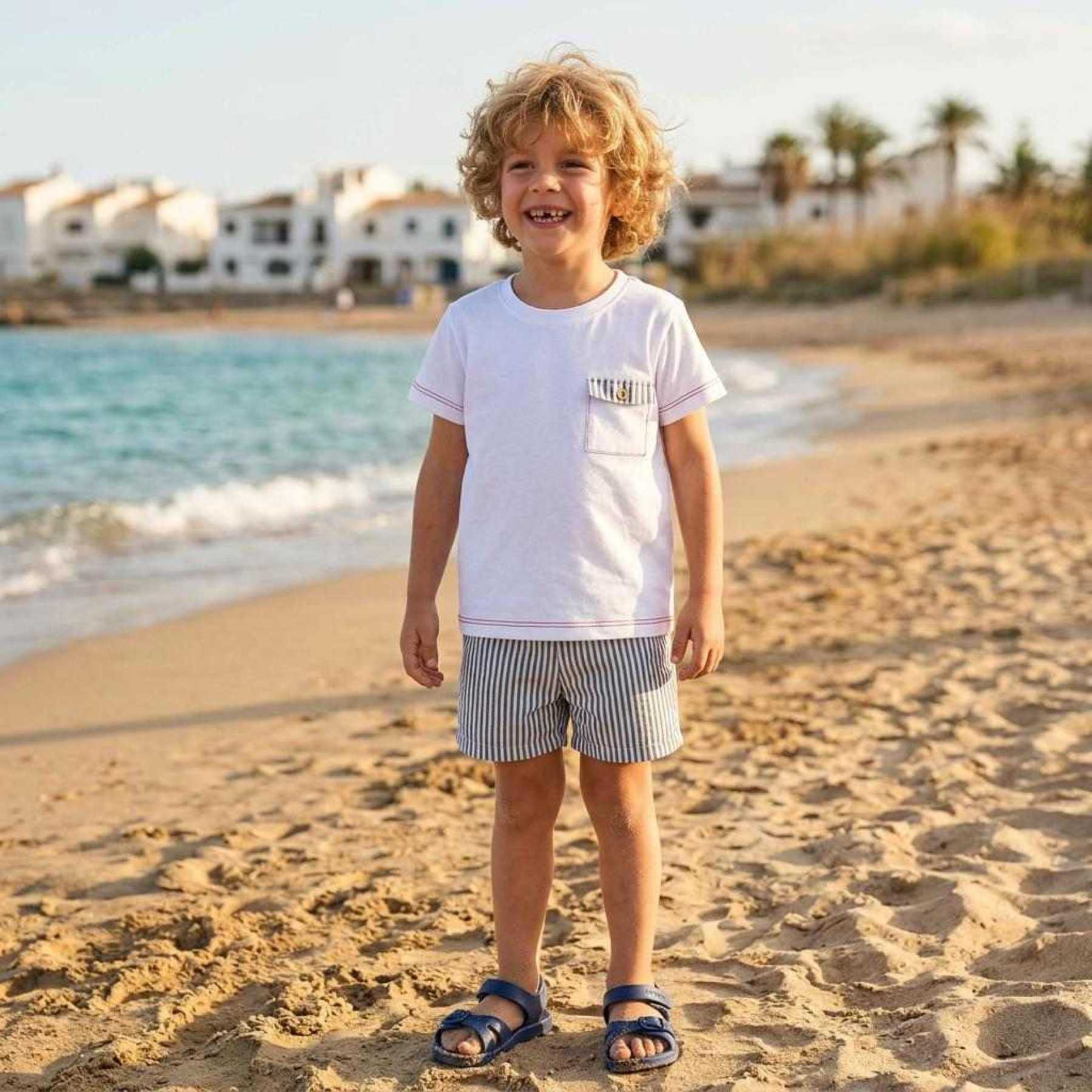 Rapife Summer Boys Top & Stripe Bermuda Shorts Set X 2 - White Navy
