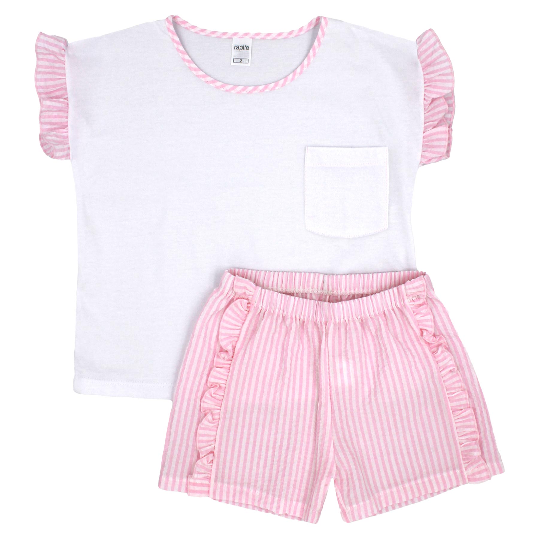 Rapife Summer Girls Top & Stripe Seersucker Bermuda Shorts Set X 2 - White Pink