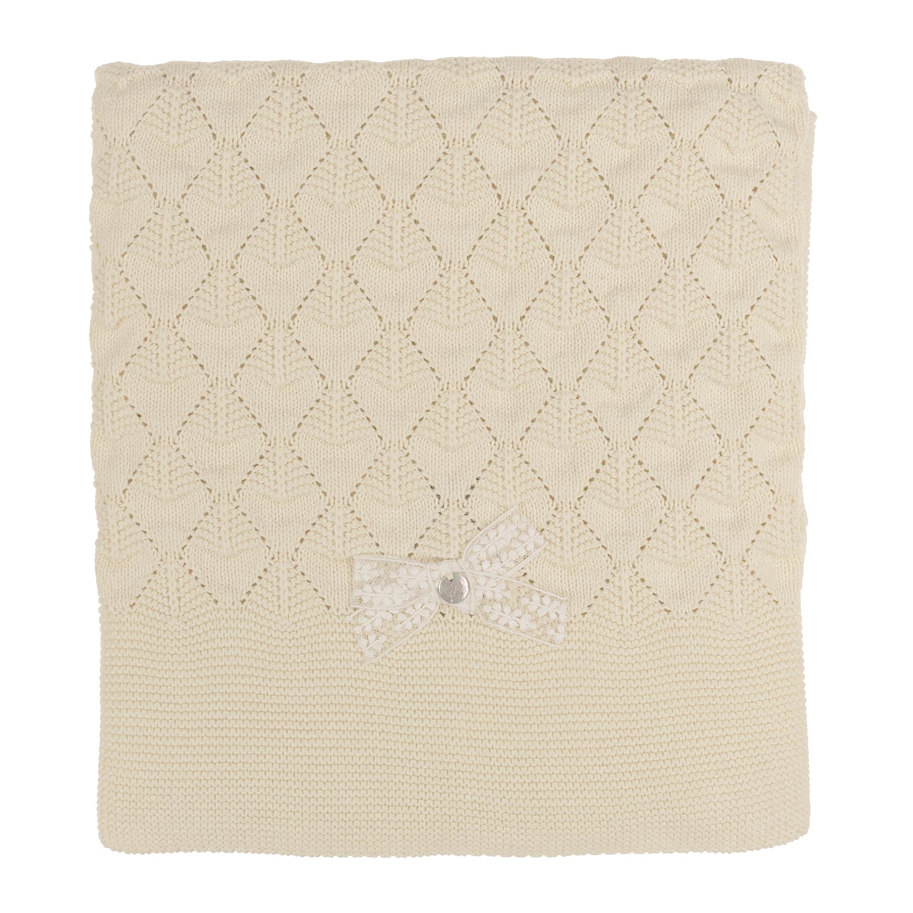 Rigola Baby Girls Elegant Chess Raised Knit Organic Cotton Shawl - Beige
