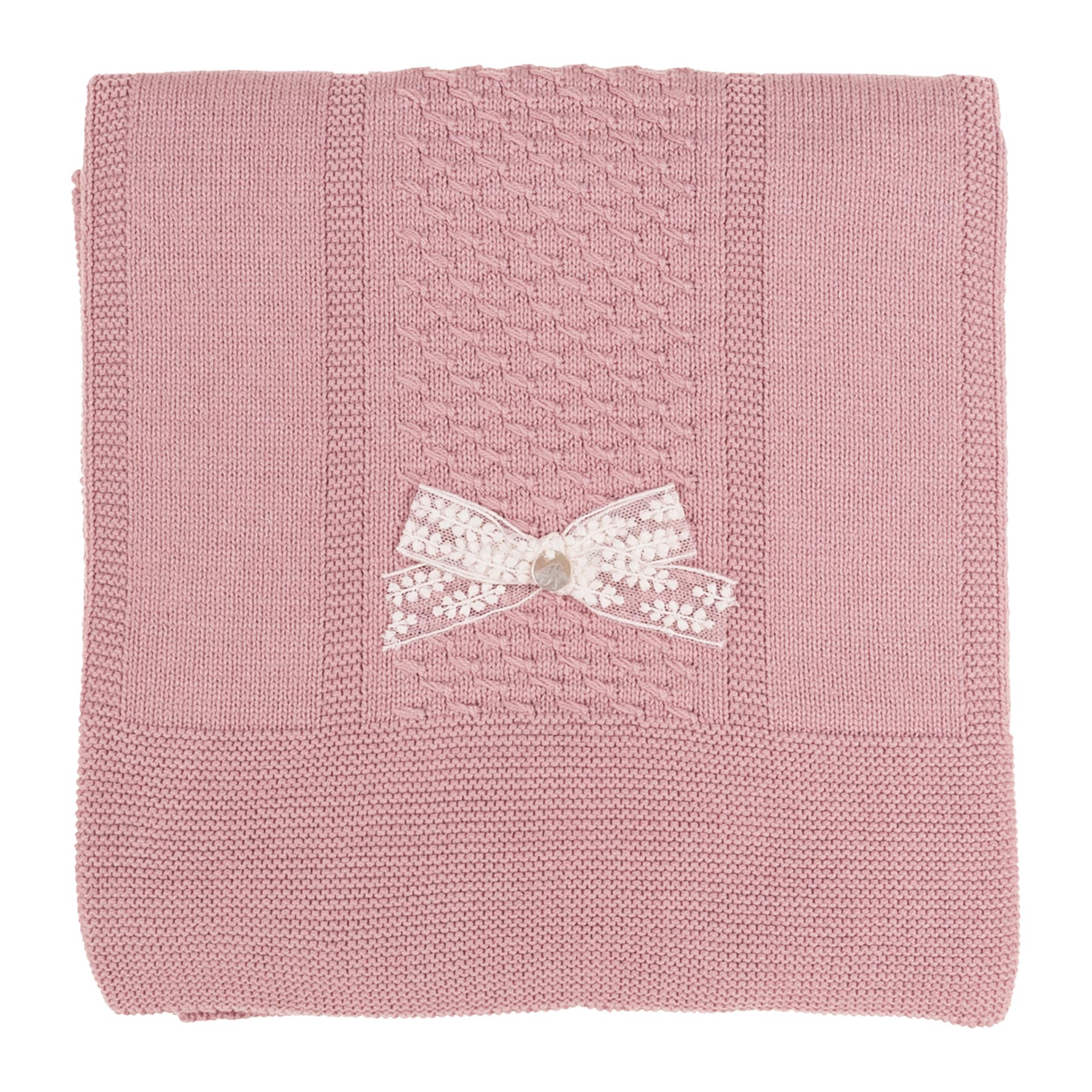 Rigola Baby knit collection - Baby Organic Cotton Knitted Shawl with raised knit panel - measures 85cm x 85cm - use as a shawl to bring baby home or as a pram or cot blanket.  Soft raised knit panels throughout.  A Beautiful gift for a New Baby - matching items to go with this shawl.  Gift box available.  Matching knitted top and legging set available.
