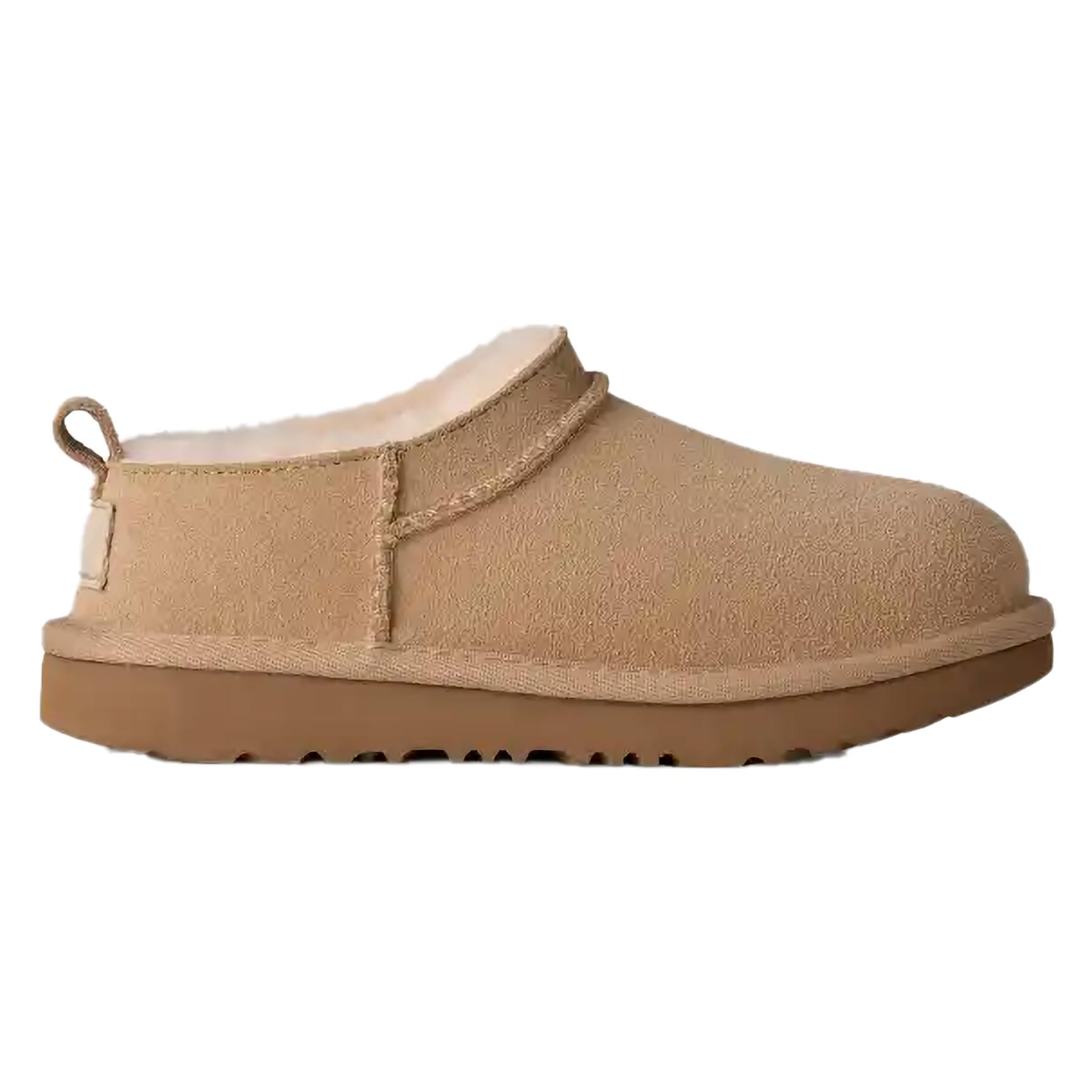 UGG's Classic Micro reimagines the fan-favorite Classic Boot with a new, low-profile design. Made with the same UGGplush™ lining and instantly cozy comfort that kids love about the original, they'll love the Classic Micro's easy slip-on shape. It has a genuine suede upper and lightweight outsole from Sugarcane EVA. Please buy your UK size.