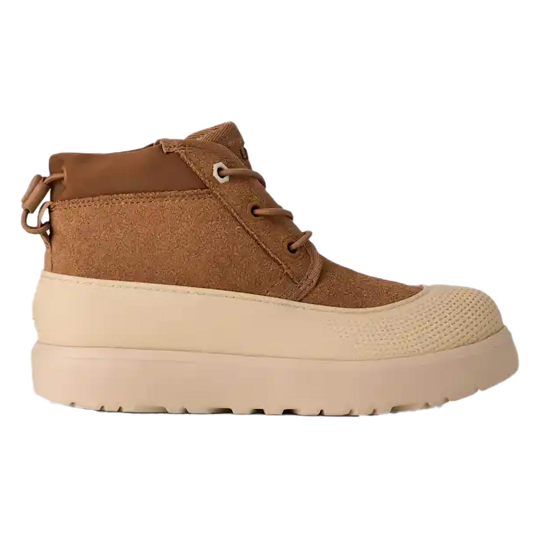 UGGs iconic heritage chukka, The Neumel, gets a weatherized upgrade with this Neumel Weather Hybrid. A timeless boot made of rich, waterproof suede, it's lined in UGGplush™ upcycled wool blend and finished with an outsole made from lightweight sugarcane EVA for all-day cushioning and a signature Classic-like feel indoors or out. Turn any day into a mini-me moment. Please buy your UK size.